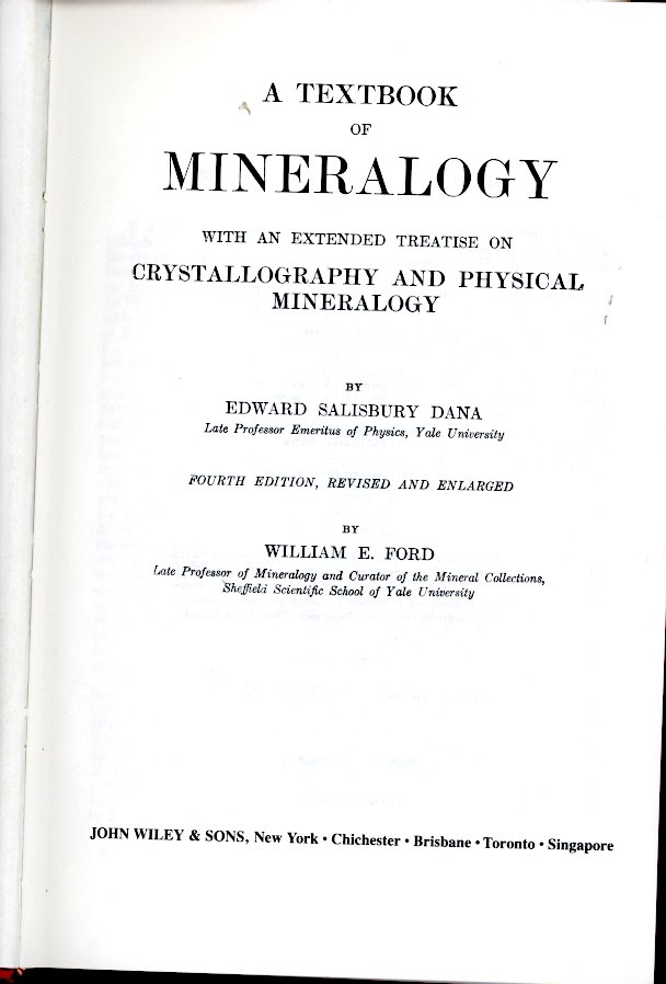 Dana – A textebook of mineralogy – William Ford