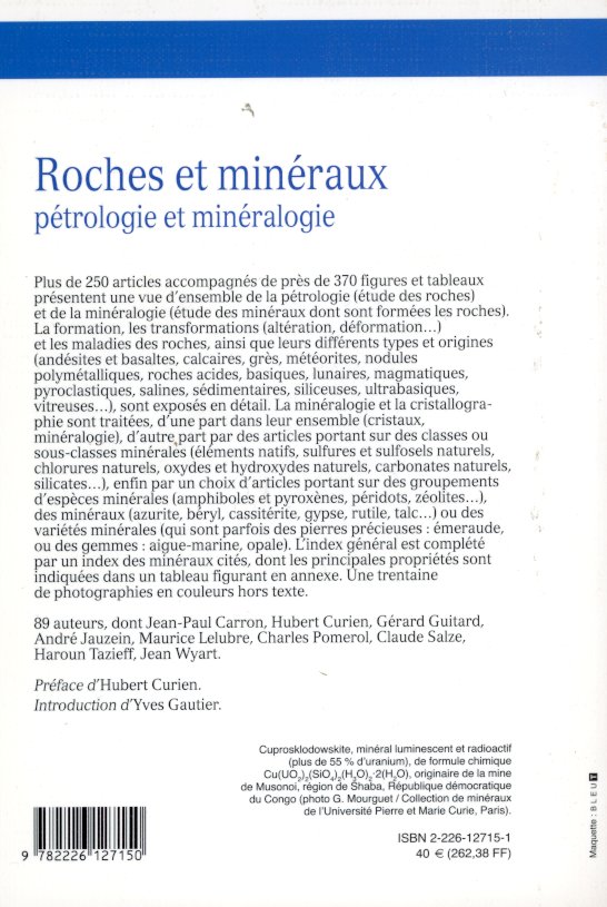 Un ouvrage méconnu des collectionneurs mais qui est fort utile pour connaitre les roches, les minéraux et même les météorites.